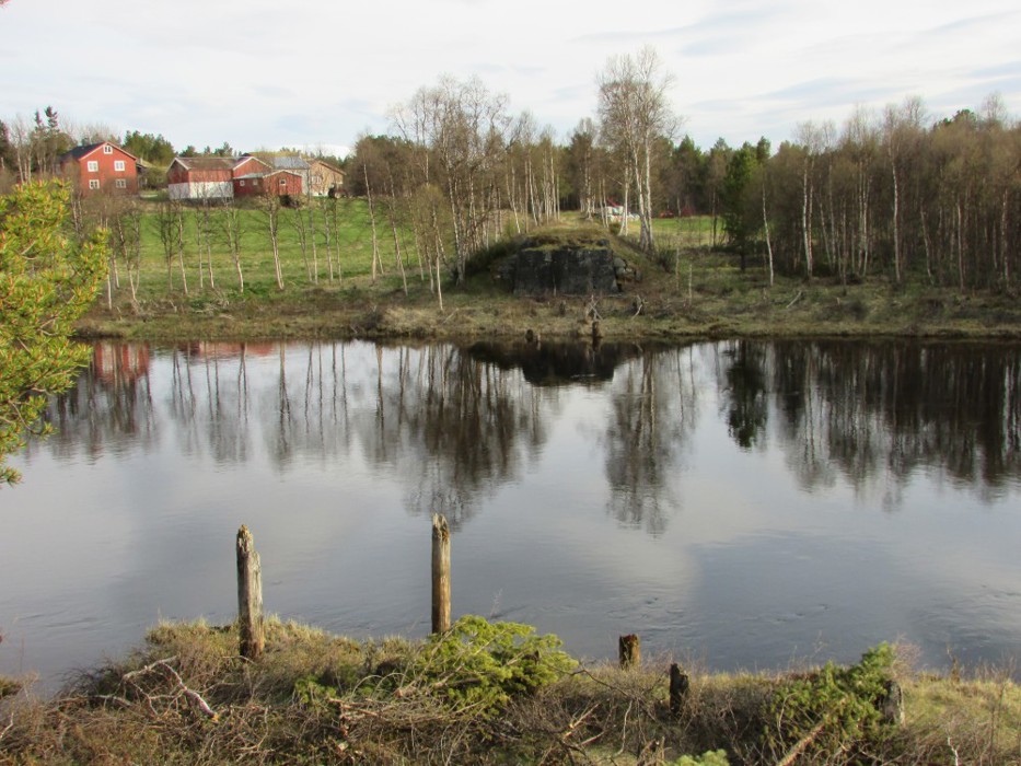 Bildet viser hvor den gamle jernbanebrua krysset Håelva ved Sjåfram.
