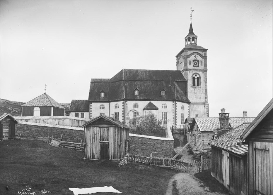 På bildet som er tatt ca. 1880, ser vi nederst til høyre uthusa i Ulrichgården. Mellom Ulrichgården og kjerka ser vi et par bygninger som tilhørte Volqvartsgården. I 1882 kjøpte Peder Holden Volqvartsgården, og i 1885 foretok han en stor ombygging av gården. I 1886 solgte han den vestlige delen av gården med de husa vi ser på bildet til slakter I. B. Moe (John Baardsen Moe 1835–1898). Moe starta spiseforretning i bygget der stigen står. Moe var en av de ytterst få i bergstaden som fikk skjenkebevilling (for øl).