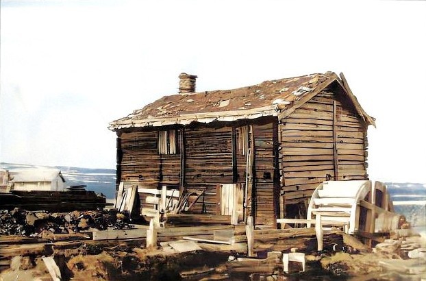 På bildet ser vi stamphuset på Øren. Det lå rett overfor Litjmoen, på andre sida av Hyttelva. Huset på Litjmoen ses i bakgrunnen til venstre i bildet. Bildet er trulig tatt rundt 1890. Vi ser at huset er under restaurering med bl.a. montering av nytt vasshjul. Hjulet var et såkalt underfallshjul som sto nede i en kanal og ble drevet av vasstrømmen. Etter at bildet ble tatt, ble det bygd hus over vasshjulet.